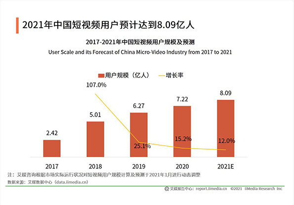 2021年中国短视频用户将达8.09亿人,抖in、快手成超级应用平台!